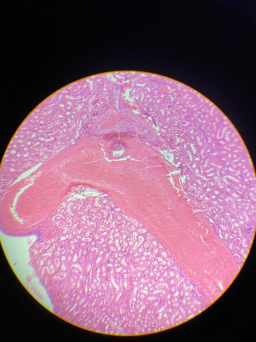 Kidney non-median sag. sec, light microscope with 4x objective.