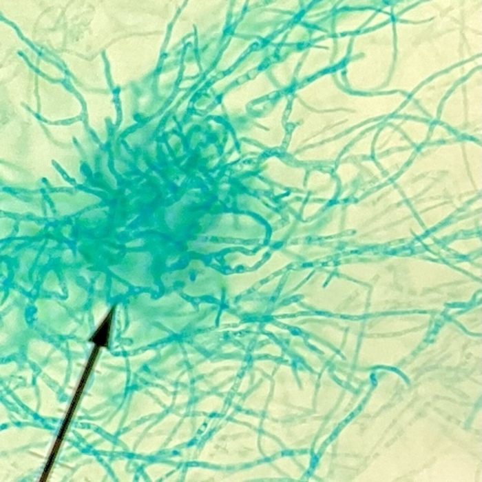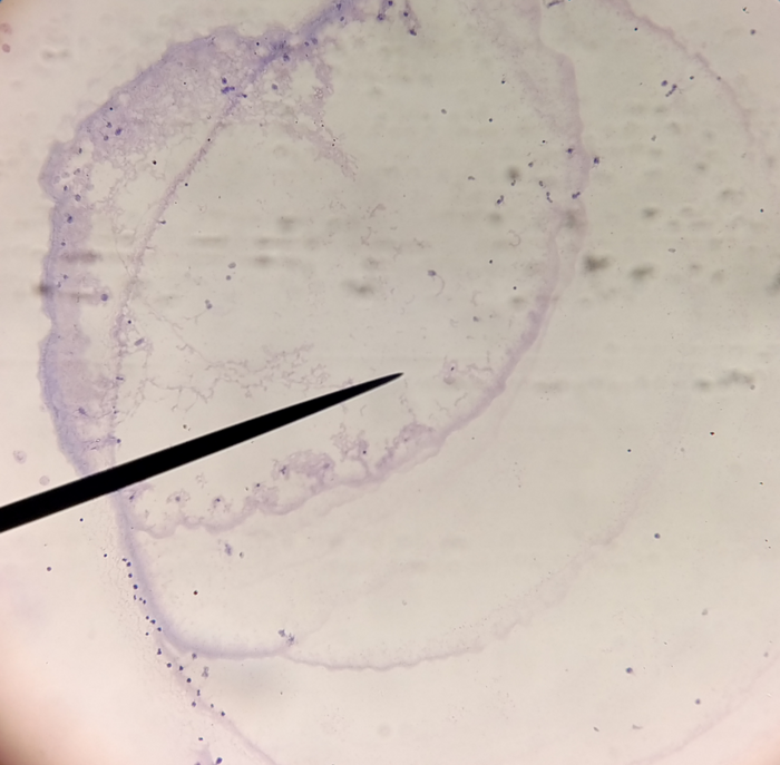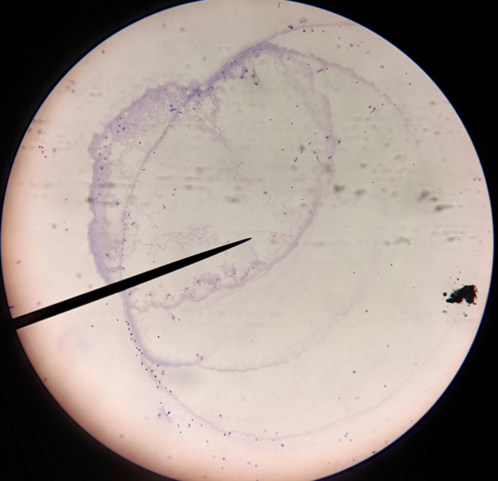 Post an image of a light or electron microscope specimen that was imaged and processed digitally. Include a description of the specimen, microscopy type, and magnification.