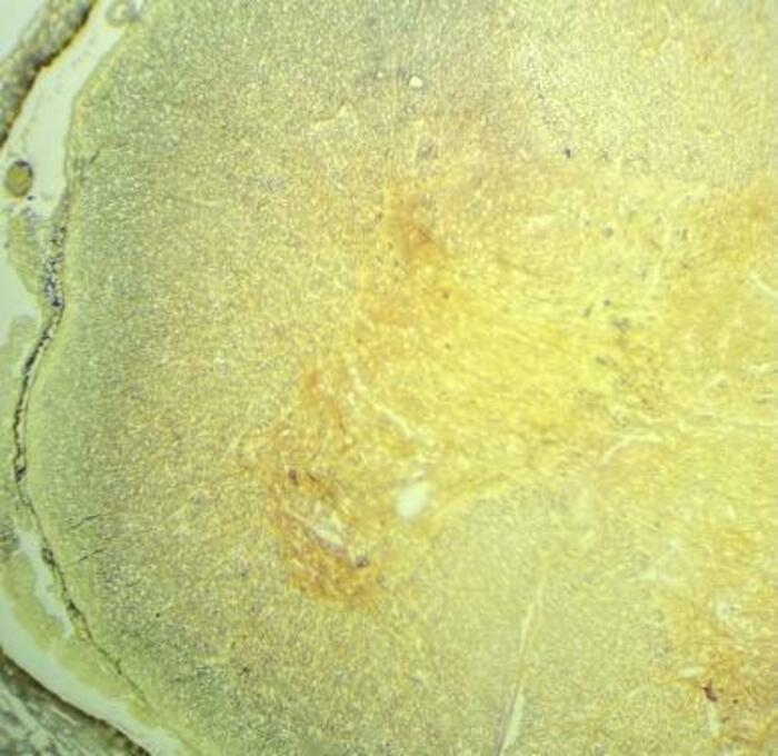 This is a image of a Spinal cord with a silver impregnation viewed under a 10x scope. This image has been edited through photos a program which is automatically installed on a windows pc.