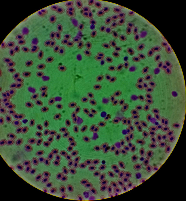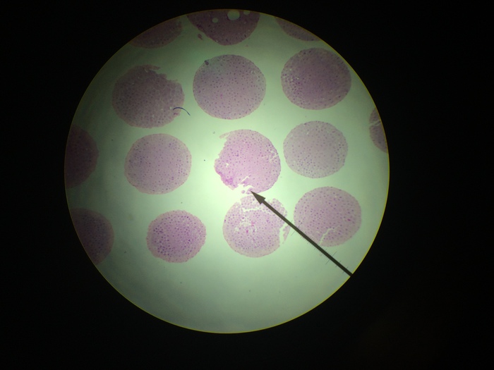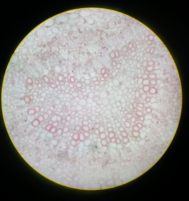 Post an image of a light or electron microscope specimen that was imaged and processed digitally. Include a description of the specimen, microscopy type, and magnification.