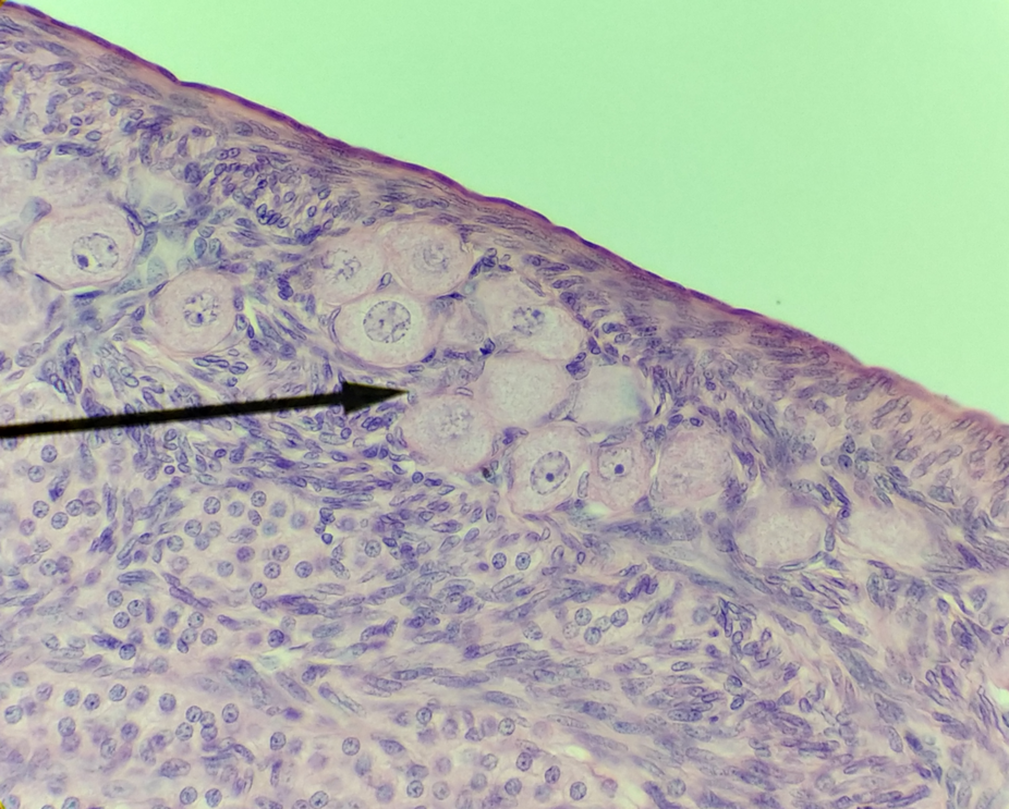 Cat Ovaries with Eggs, Light Microscope, 40x