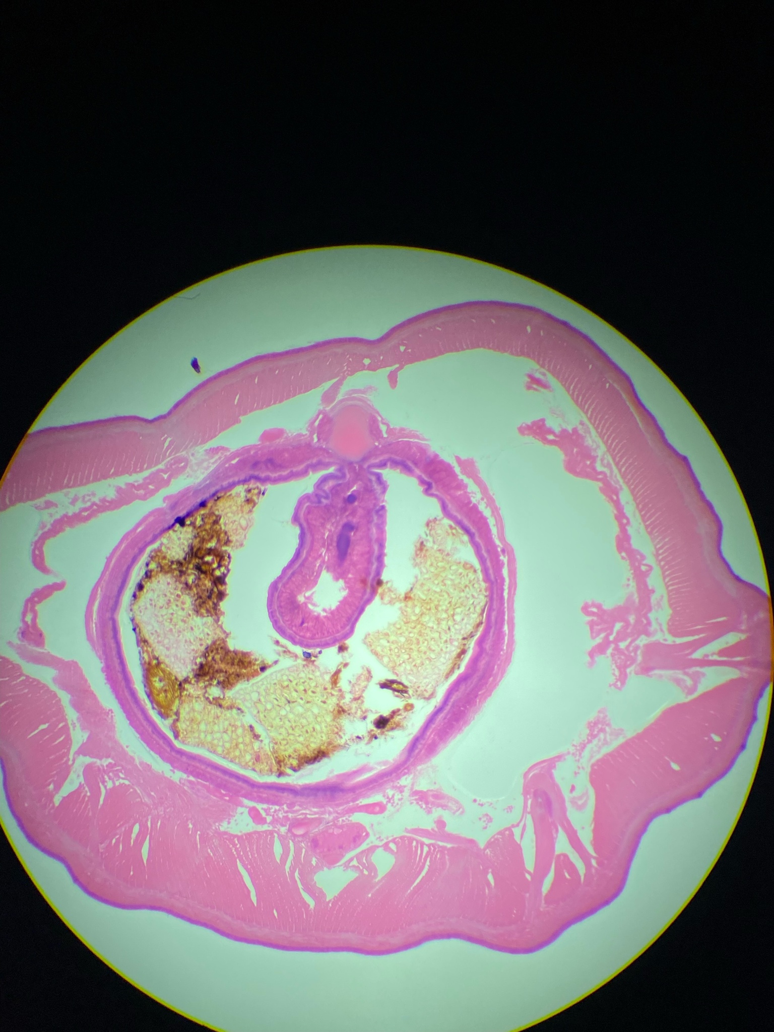 An Earthworm cross-section under a light microscope with a 4x objective