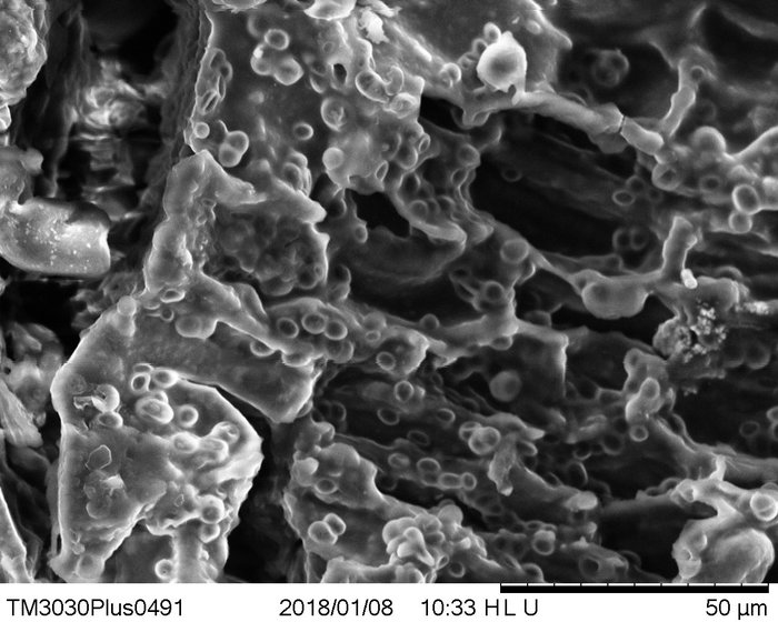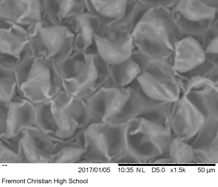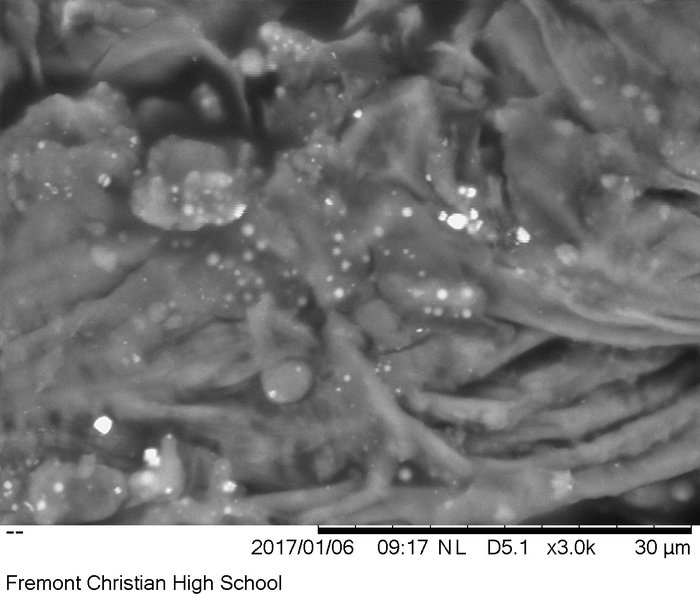Post an image of an electron microscopy specimen that was collected, prepared, and imaged on the Hitachi TM3000 by you. Include a description of the specimen and magnification.