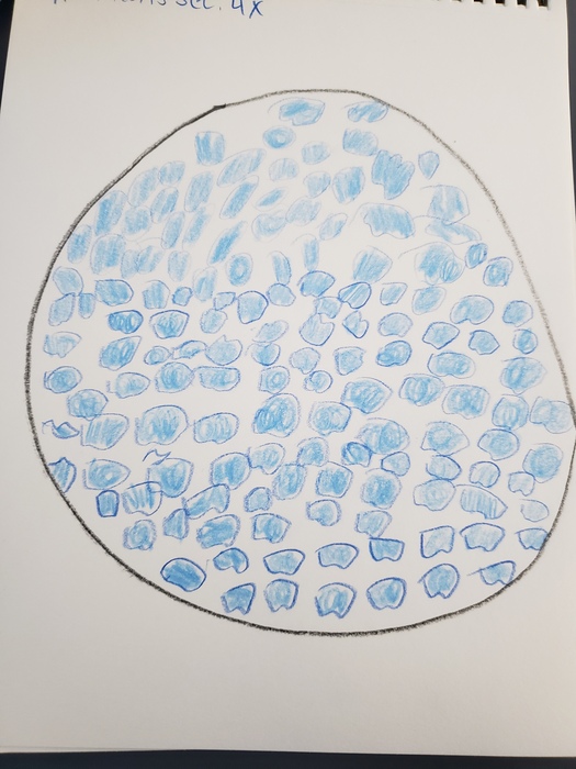 Post an image of a hand-drawn sketch of a light microscopy specimen. Drawing submissions must be on full size sketch paper (8x10, 8x11, 9x12) and appropriately labeled with a brief description of the specimen type, and magnification.