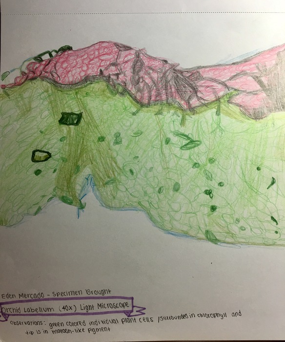 Sketch of Orchid Labellum (40x) under Light Microscope - Eden Mercado