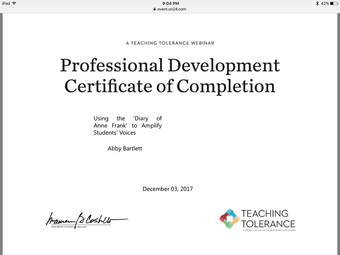 The webinar did not have us create anything, but this is an example of how the webpage is set up for a student to reference.