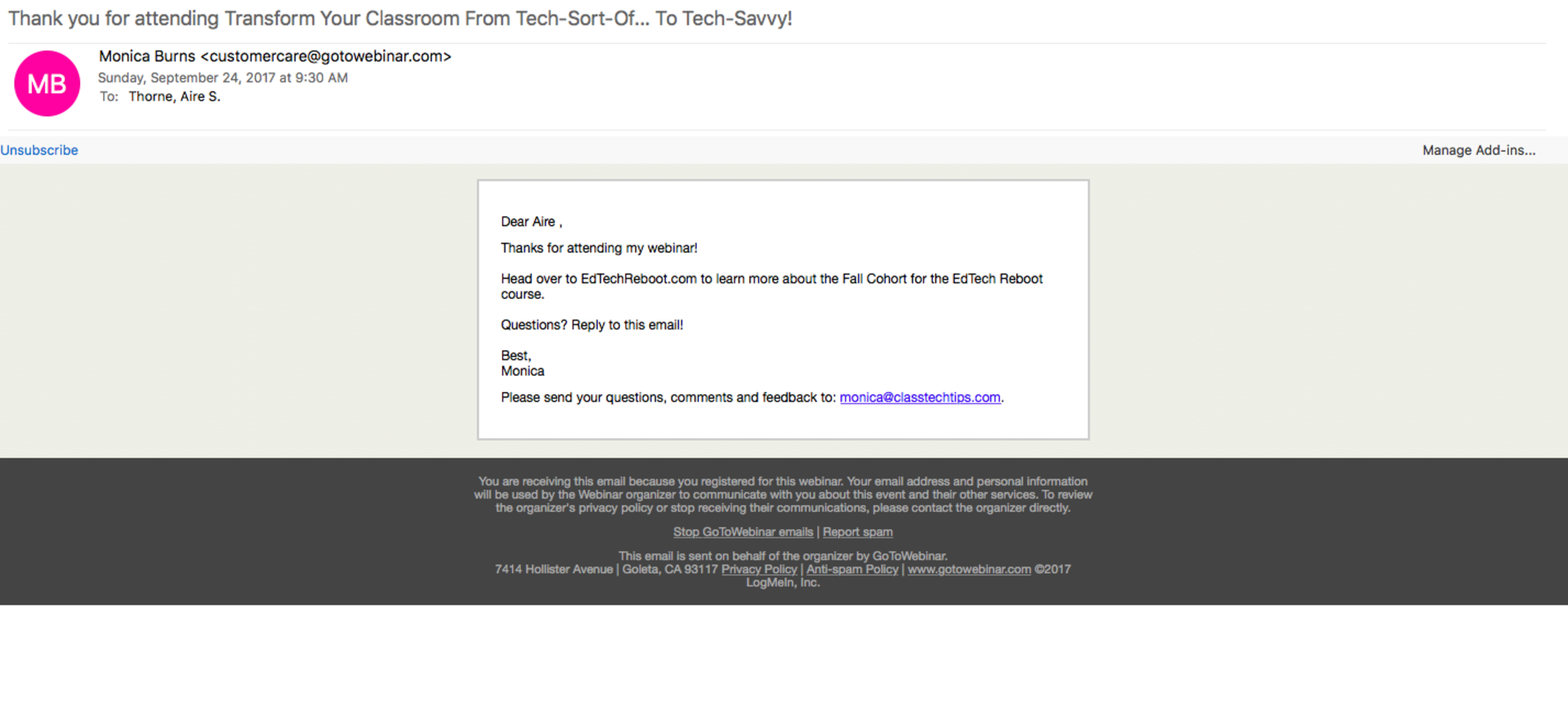 Confirmation of attendance Session 1