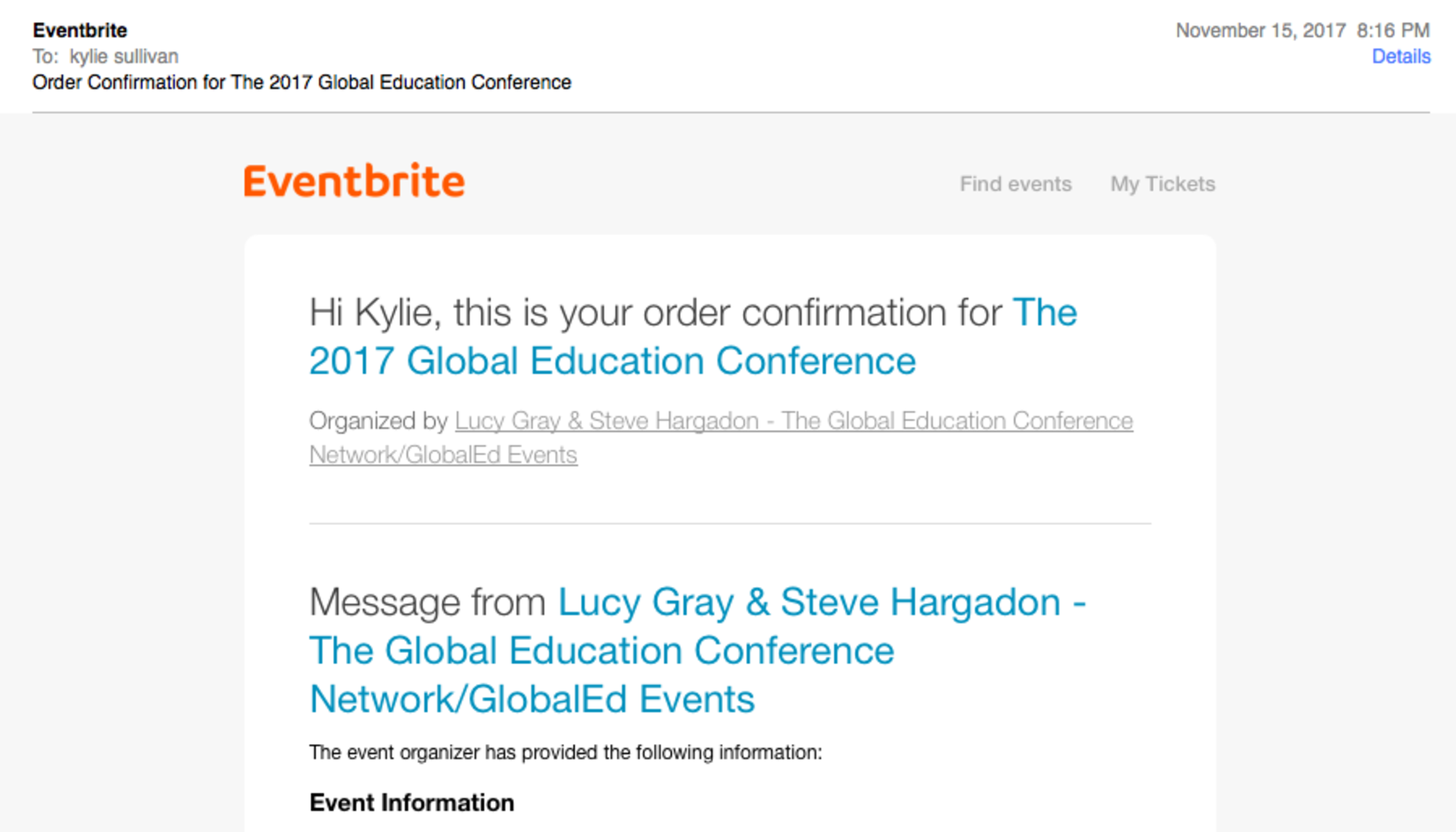This is my confirmation email stating that I am going to the online conference.
