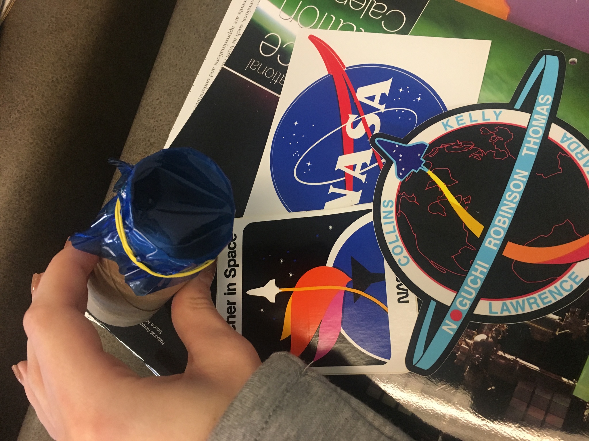 This is the telescope we used in the activity today and some of the stickers we got from the program.