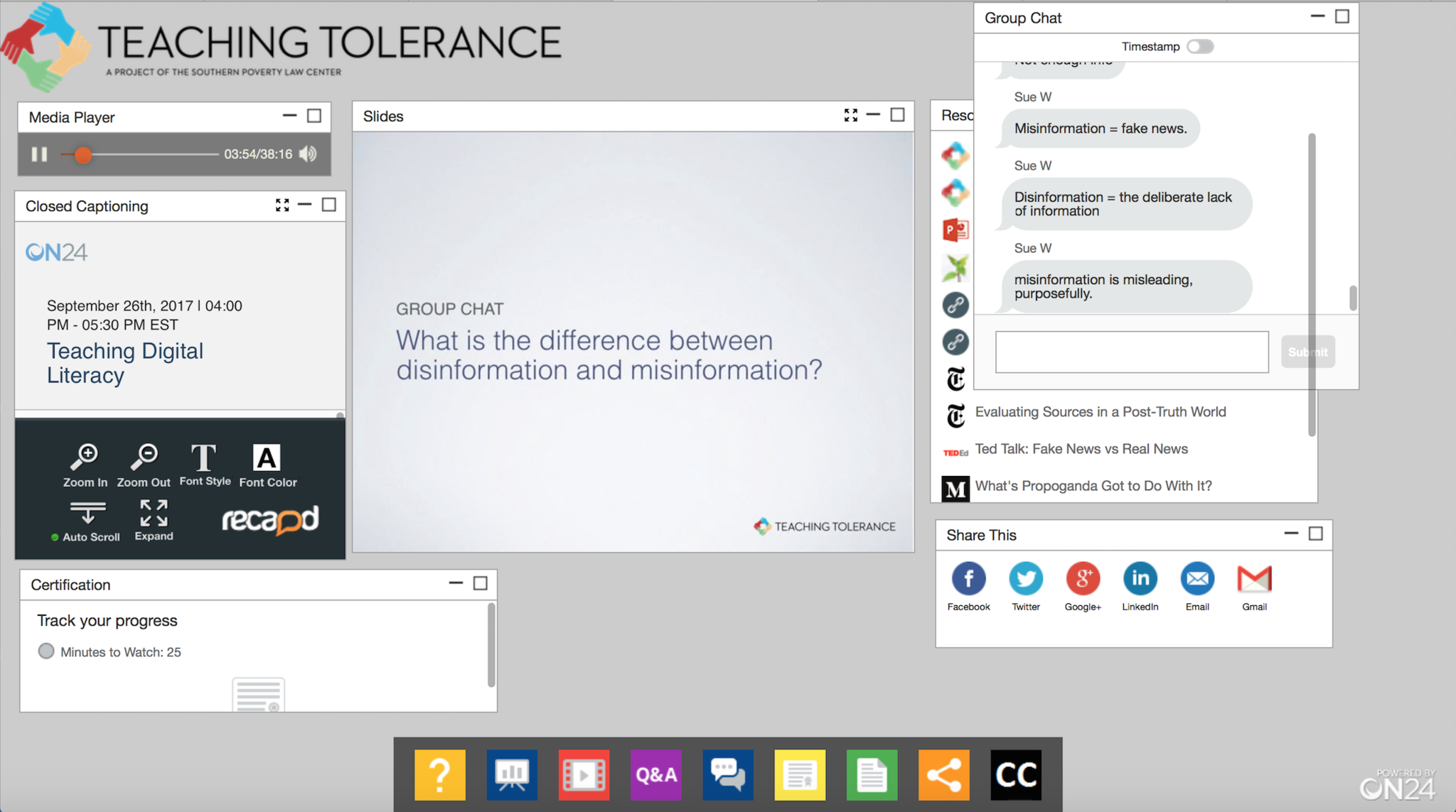 The discussion is shown to the right. We asked/answered questions while listening to the webinar.