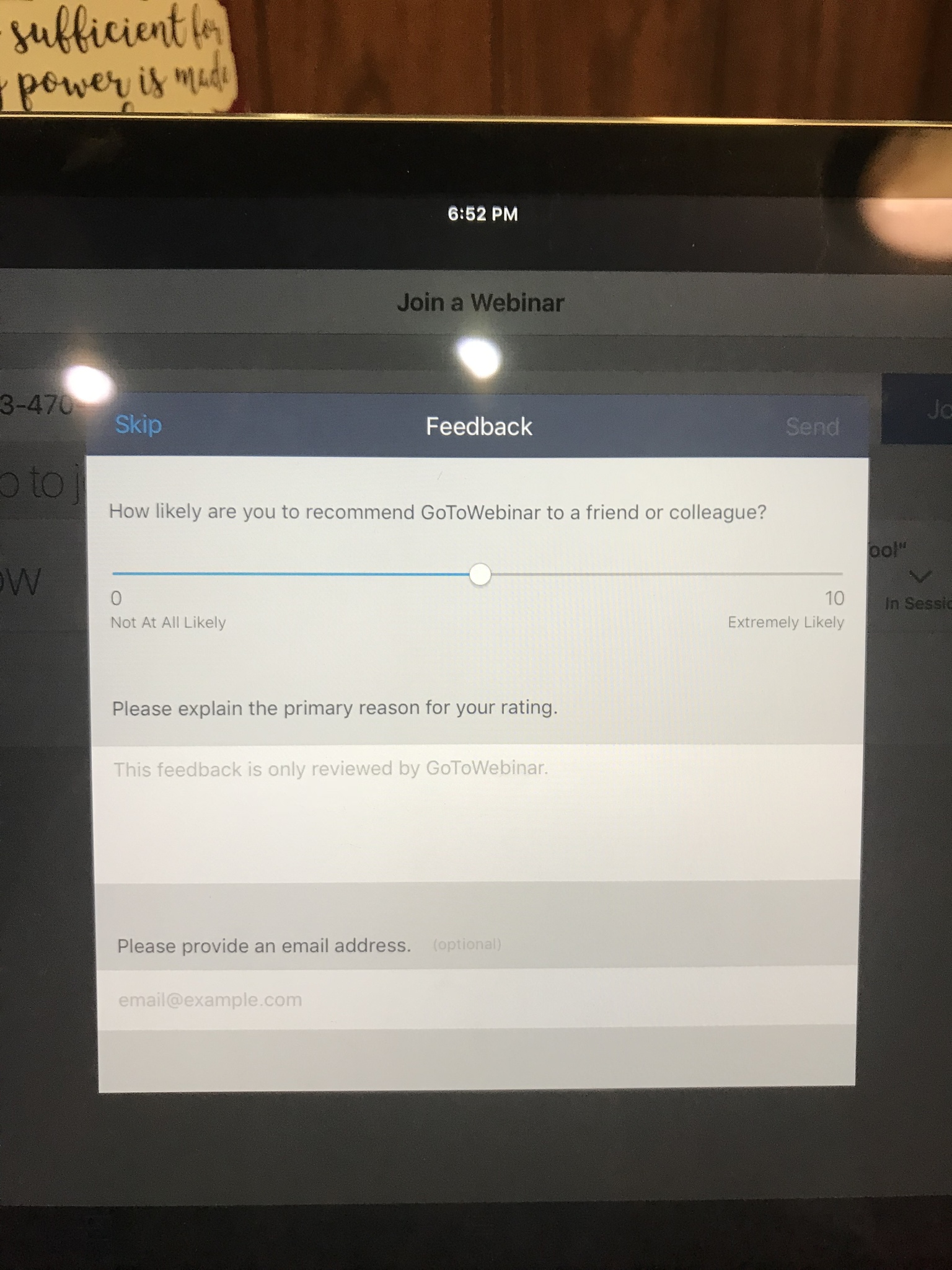 Here is the review of the webinar that popped up after the webinar ended.