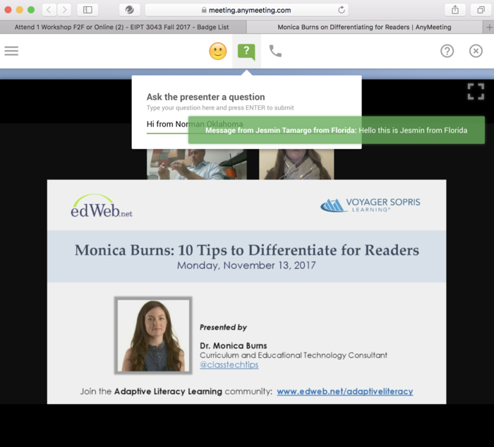 This photo shows the live video stream on the discussion and you can see that I am listed under participants