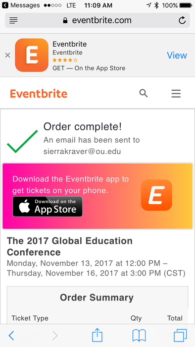 This is the picture of my sign up confirmation