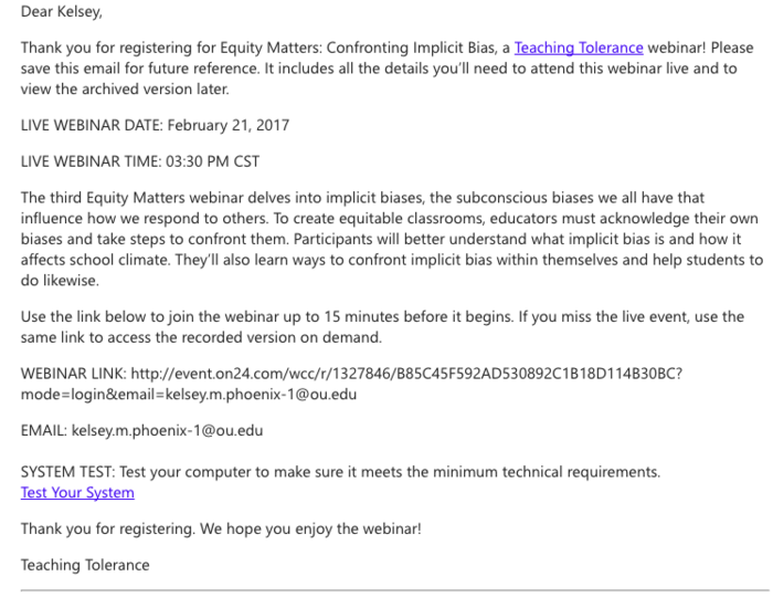 Include a selfie or any confirmation you receive of attendance.