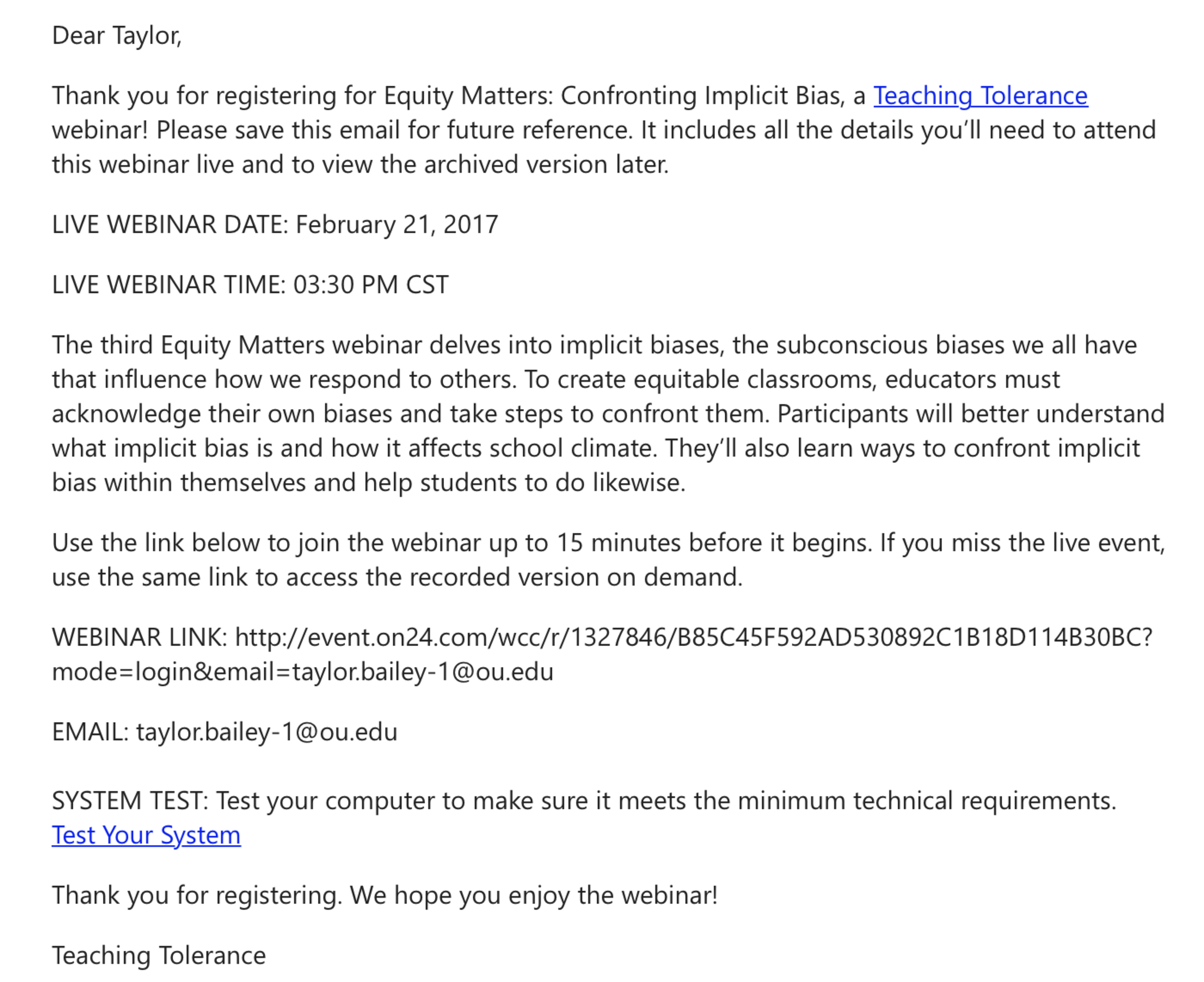 Confirmation of attendance Session 1