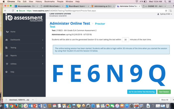 Follow the steps in EADMS 101- Administer Online Test PDF. https://tinyurl.com/ycg5kod5 Post a screenshot of an online assessment session ID you have generated.