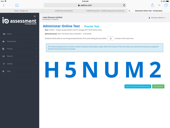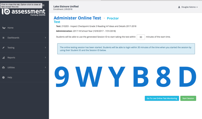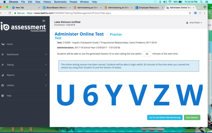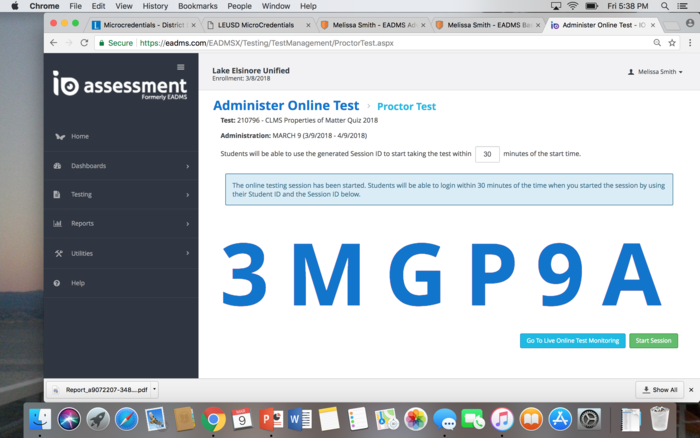Follow the steps in EADMS 101- Administer Online Test PDF. https://tinyurl.com/ycg5kod5 Post a screenshot of an online assessment session ID you have generated.
