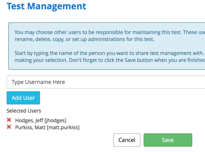 http://www.screencast.com/t/CBlB8EoX Post a screenshot of who can "manage" your test