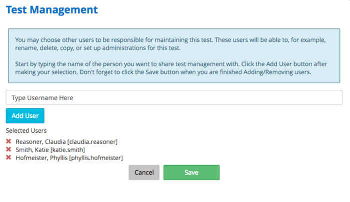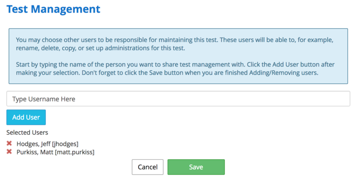 Here is an example of sharing my test with 2 people at my site. Randy Kirschman