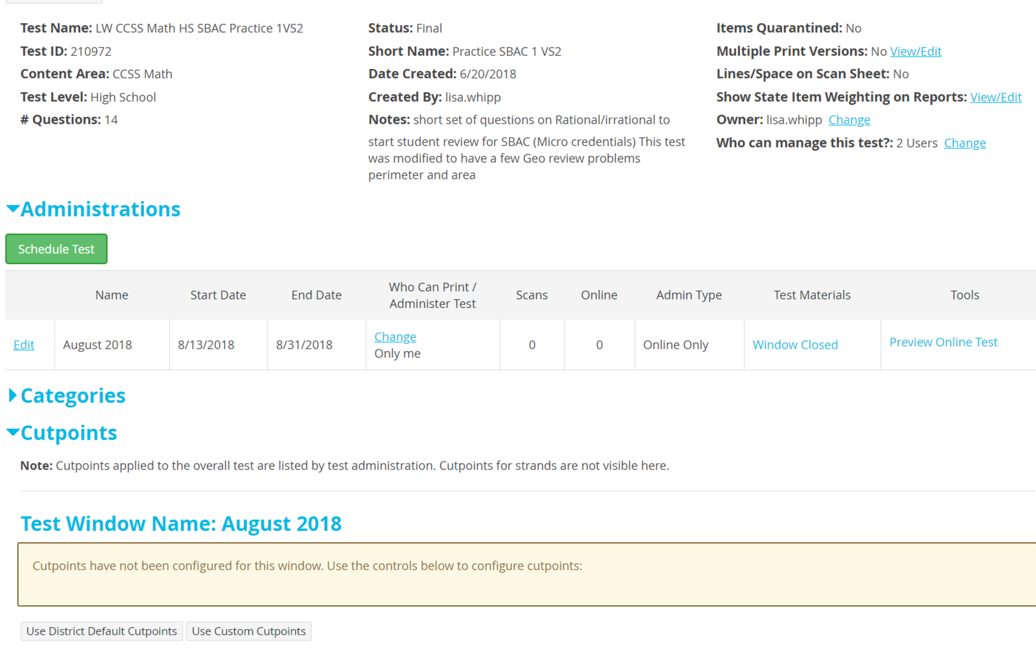 Administering an Online Test