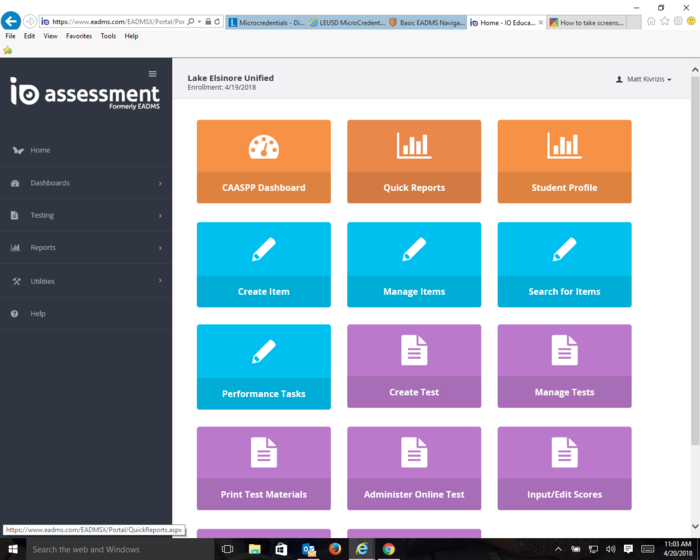Watch the video below and post a screenshot of the EADMS home screen with your name in the upper right corner. http://www.screencast.com/t/vDd0fDS9q5xu