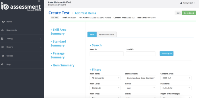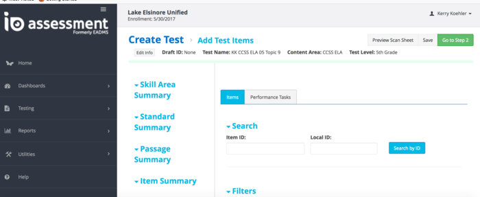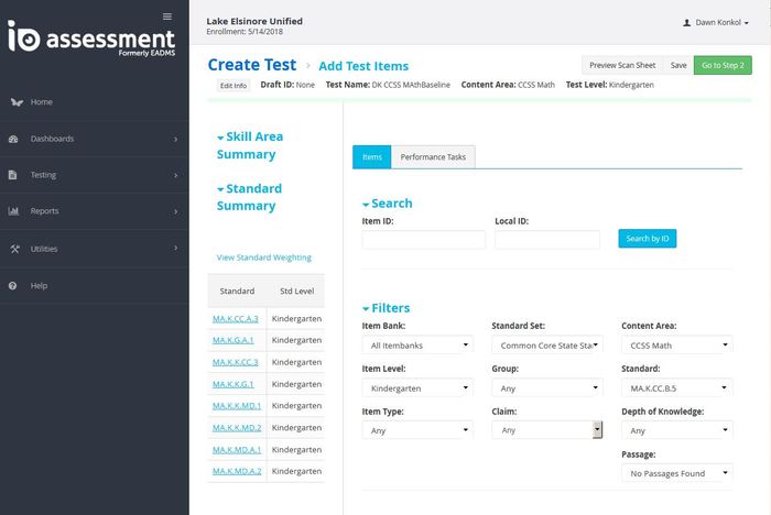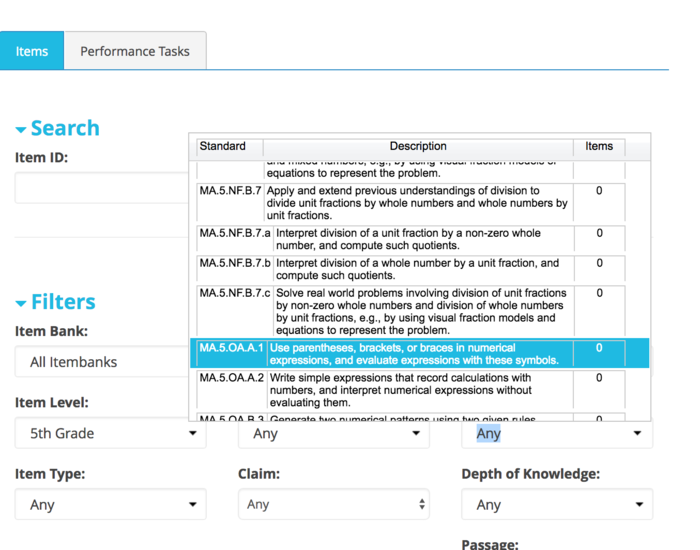 There are no questions listed under "standards" I've scrolled through the entire list of items and it only shows zeroes.
