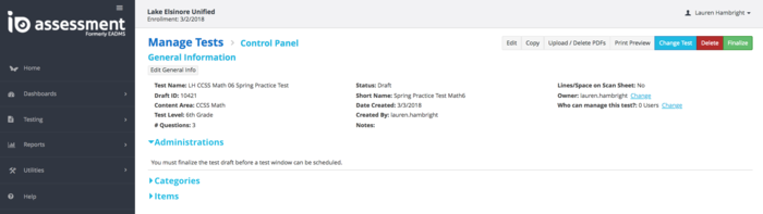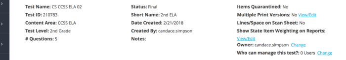 The name of my test is NM CCSS Math 06 Ratios and the Test ID is 210813.