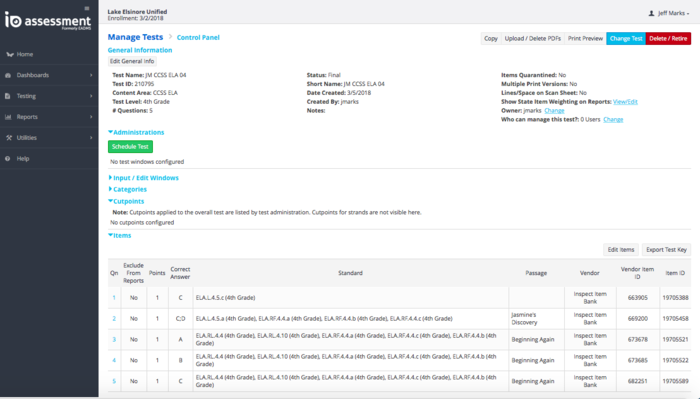 My test name is RK CCSS Math HS and the ID Number is 210811 -Randy Kirschman