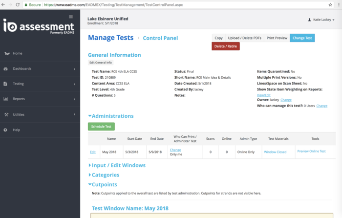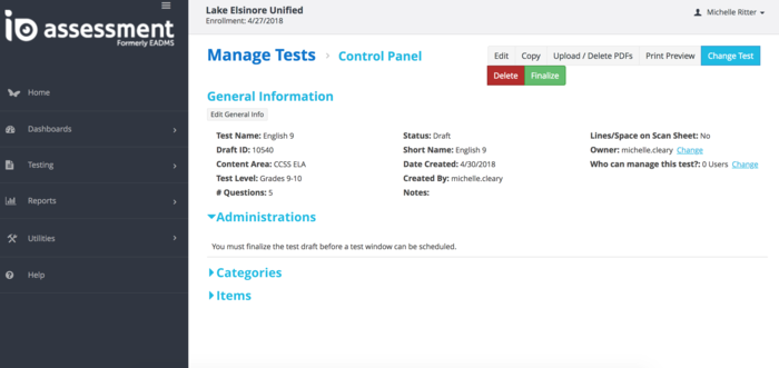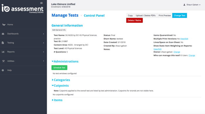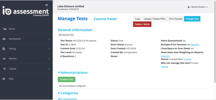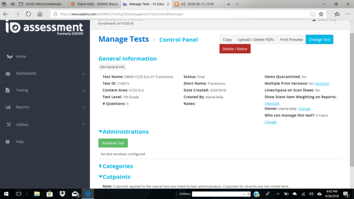 Watch this informational video on creating an assessment then create a short five question test, and post your test name and ID number. http://www.screencast.com/t/ycHKYtMH