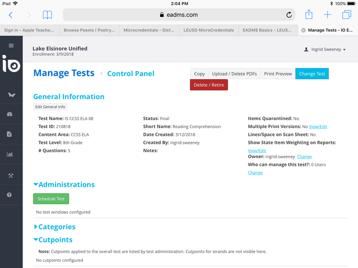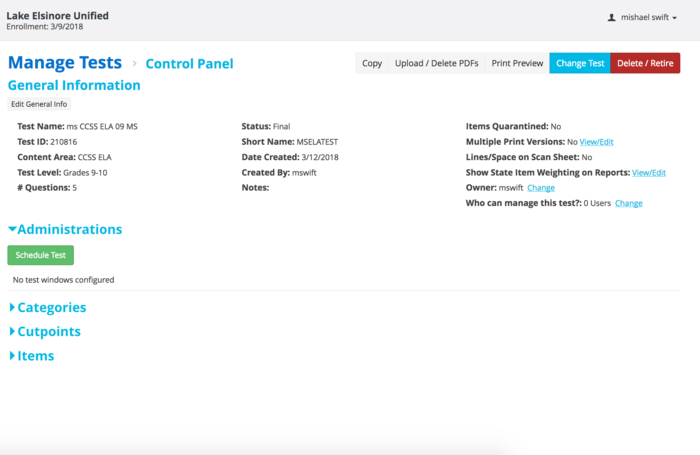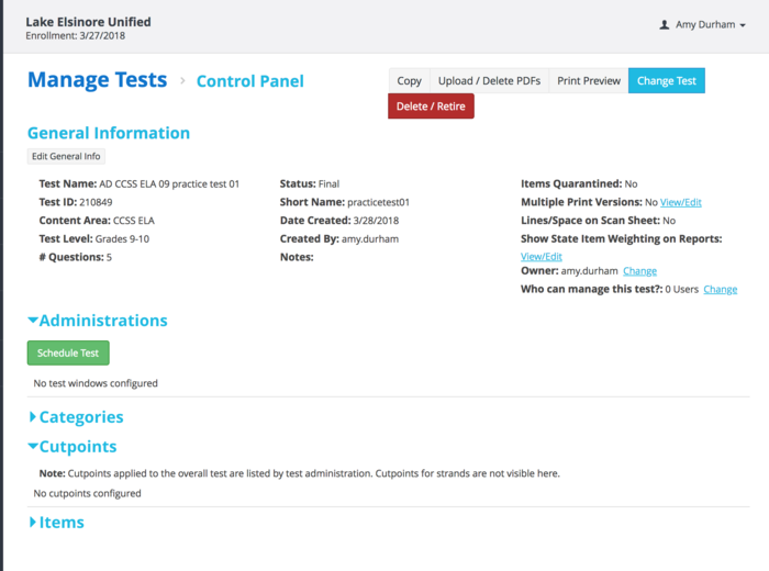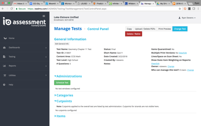 Watch this informational video on creating an assessment then create a short five question test, and post your test name and ID number. http://www.screencast.com/t/ycHKYtMH