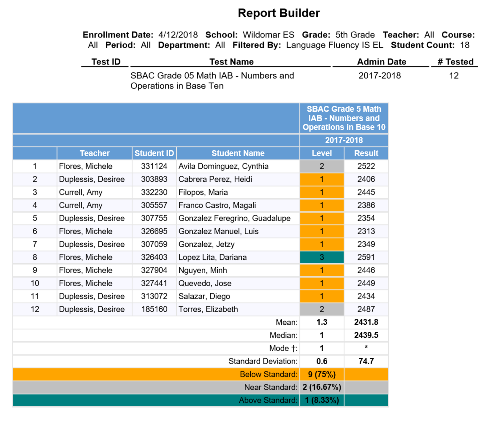 I ran a 5th grade, EL subgroup report reflecting results from a math Interim assessment block.