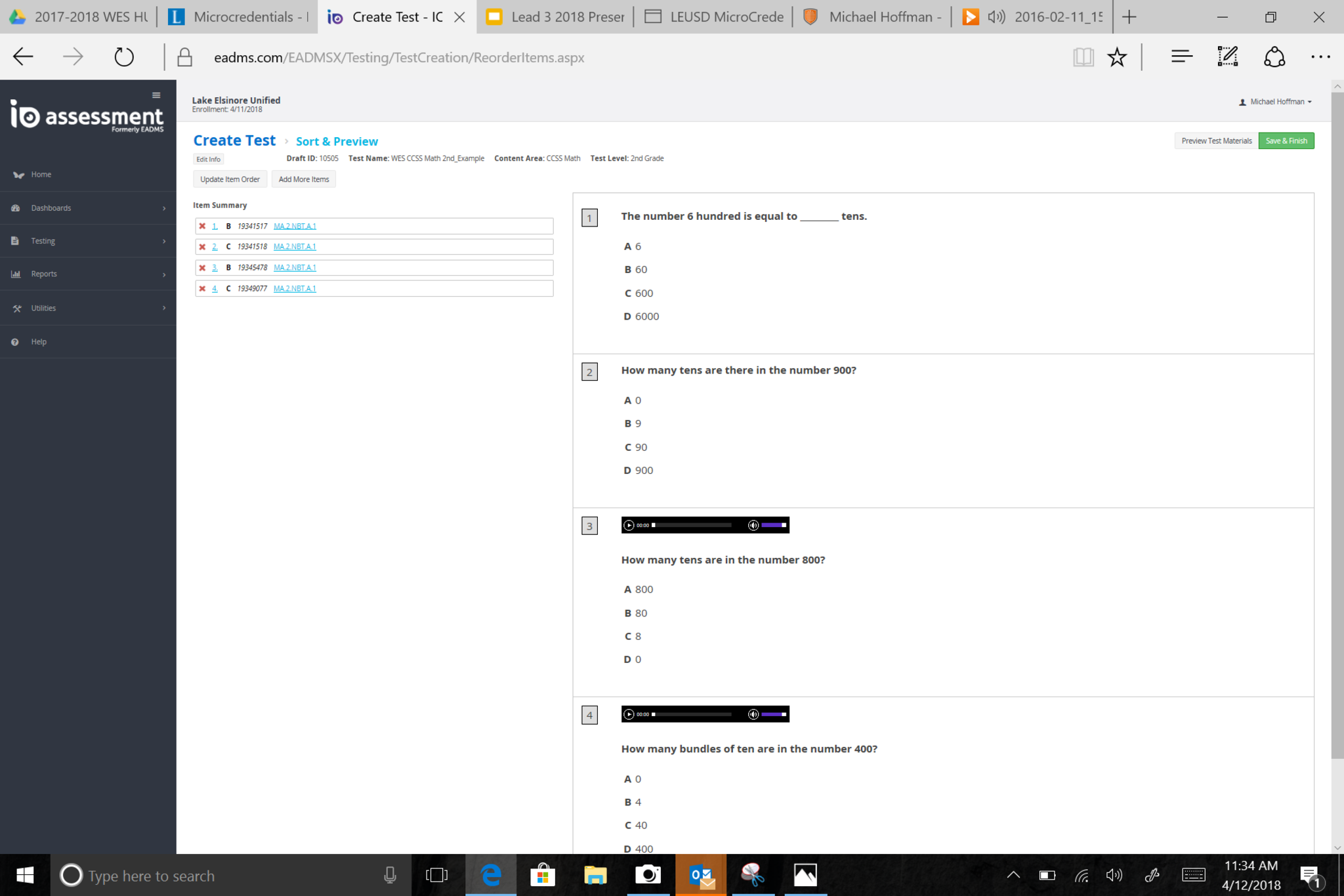The attached image is of a 4 question test I created from the item bank. Not sure what picture would better show the 'item bank.'