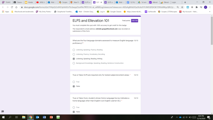 You must complete this Quiz with 100% accuracy (you may retake as many times as needed). Post a screenshot of your score.