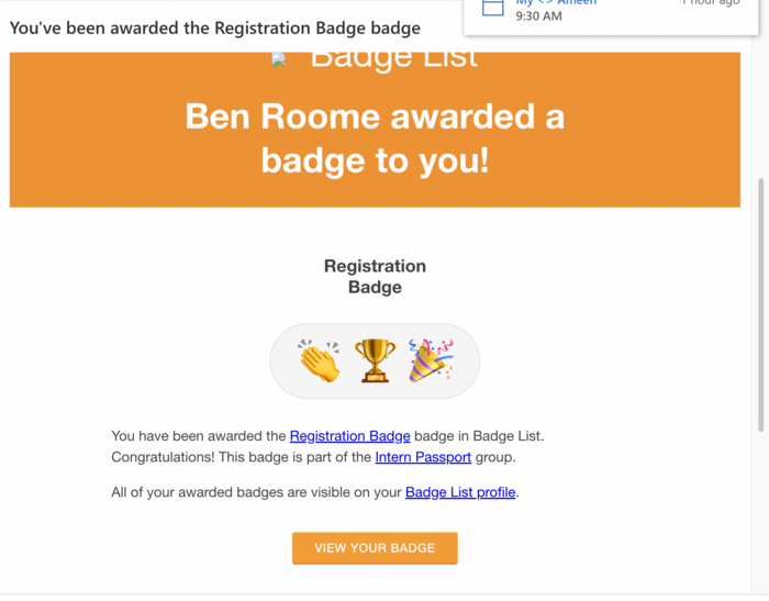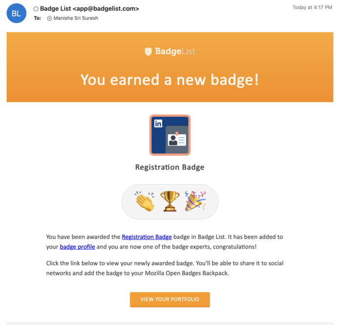 To earn this badge, find the award email in your linkedIn email account and click the link to register your account.