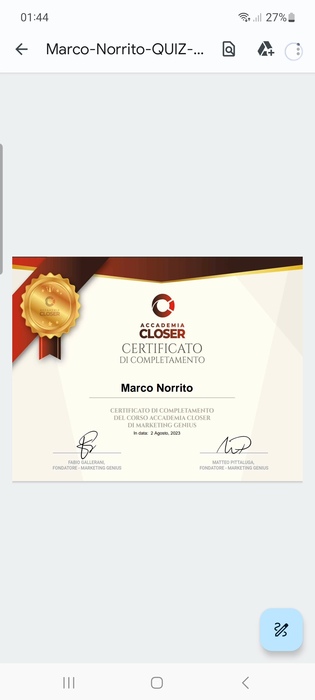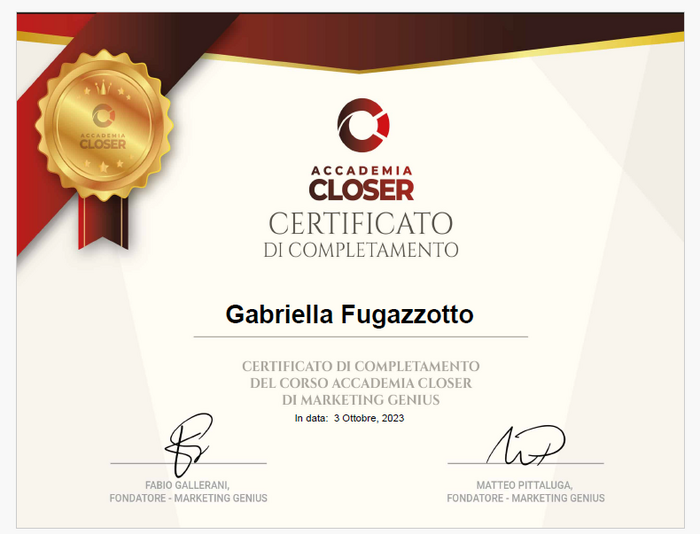 Certificato di conseguimento. 2023