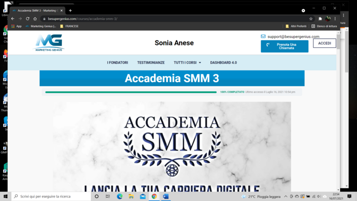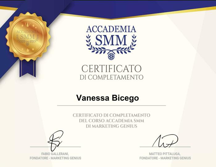 Lo studente deve completare con successo il programma intensivo di 8 settimane, partecipando attivamente alle lezioni formative ed alle sessioni applicative con i Coach. Si prega di caricare uno screenshot dell'avvenuto completamento delle lezioni nel proprio account di Marketing Genius.