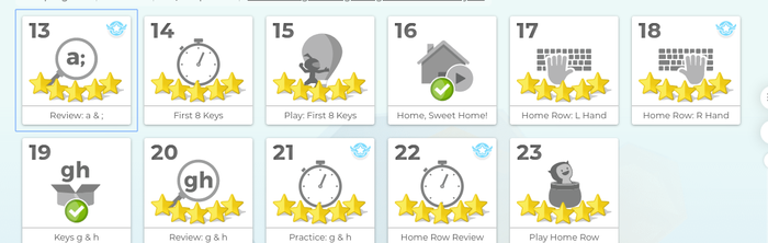 Complete Lessons 1-23 with at least 10 words per minute. Go to your home tab. Click Start. Attach a screenshot of the entire page so that I can see your stars and lesson 23.