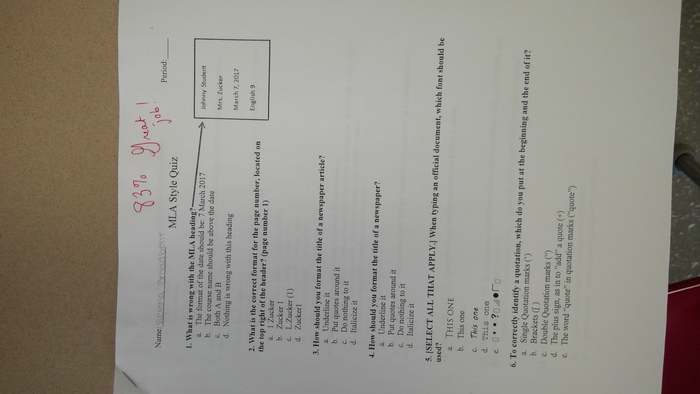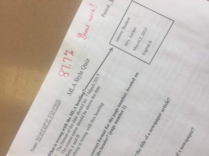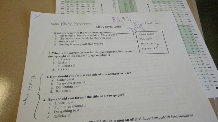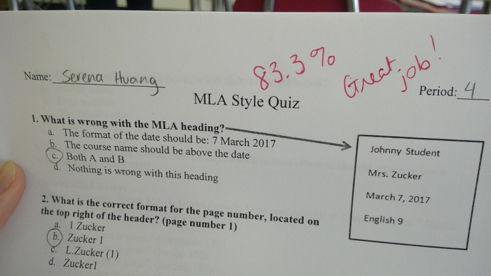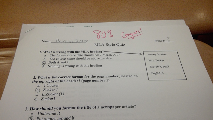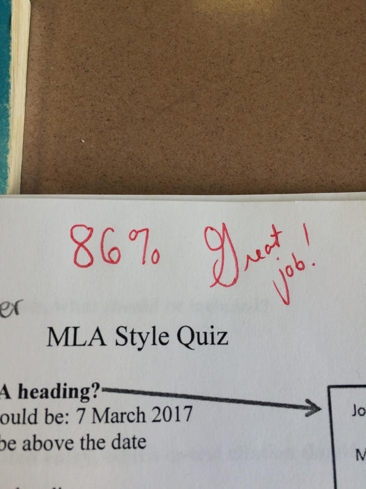 I helped write the MLA quiz and master the way of citing and proper formatting when writing a paper.