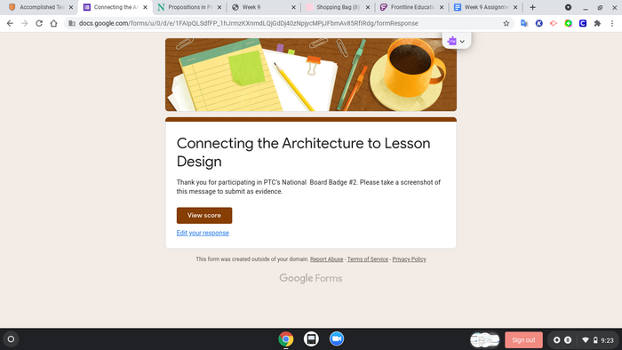 After completing all parts of the badge, Complete the Google Form, “Connecting the Architecture to Lesson Design” and take a screenshot of the message when you are done. Submit the image as evidence.