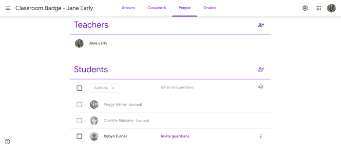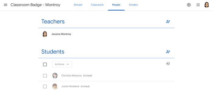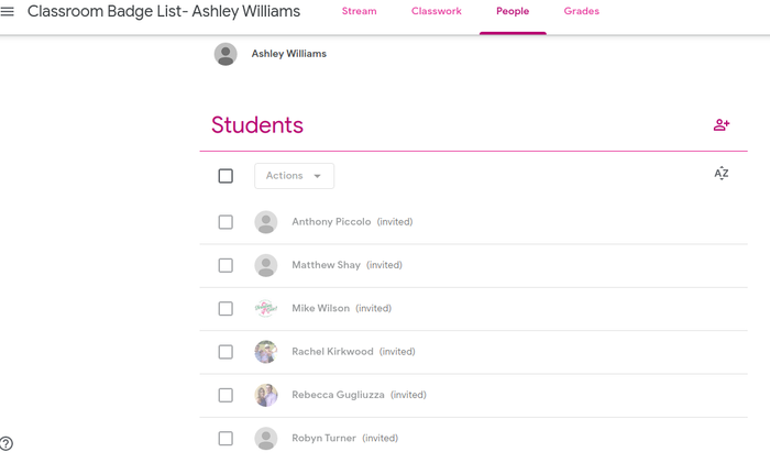 [1] Create a class & Title it ‘Classroom Badge-First/Last Name’ [2] Select a theme or Upload a photo [3] Decide to Invite Students or colleagues as ‘students’; feel free to use cmaisano@pembrokecsd.org if you just want to practice; invite 2 or more people [4] Upload snapshot of Student list