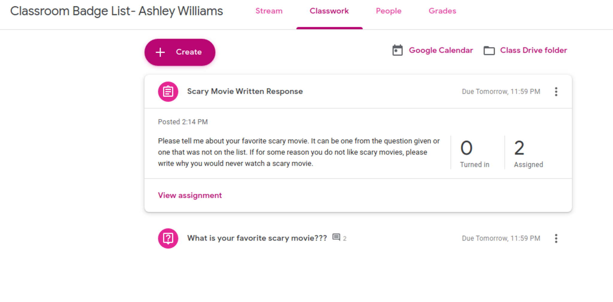 Draft an Assignment in Classroom