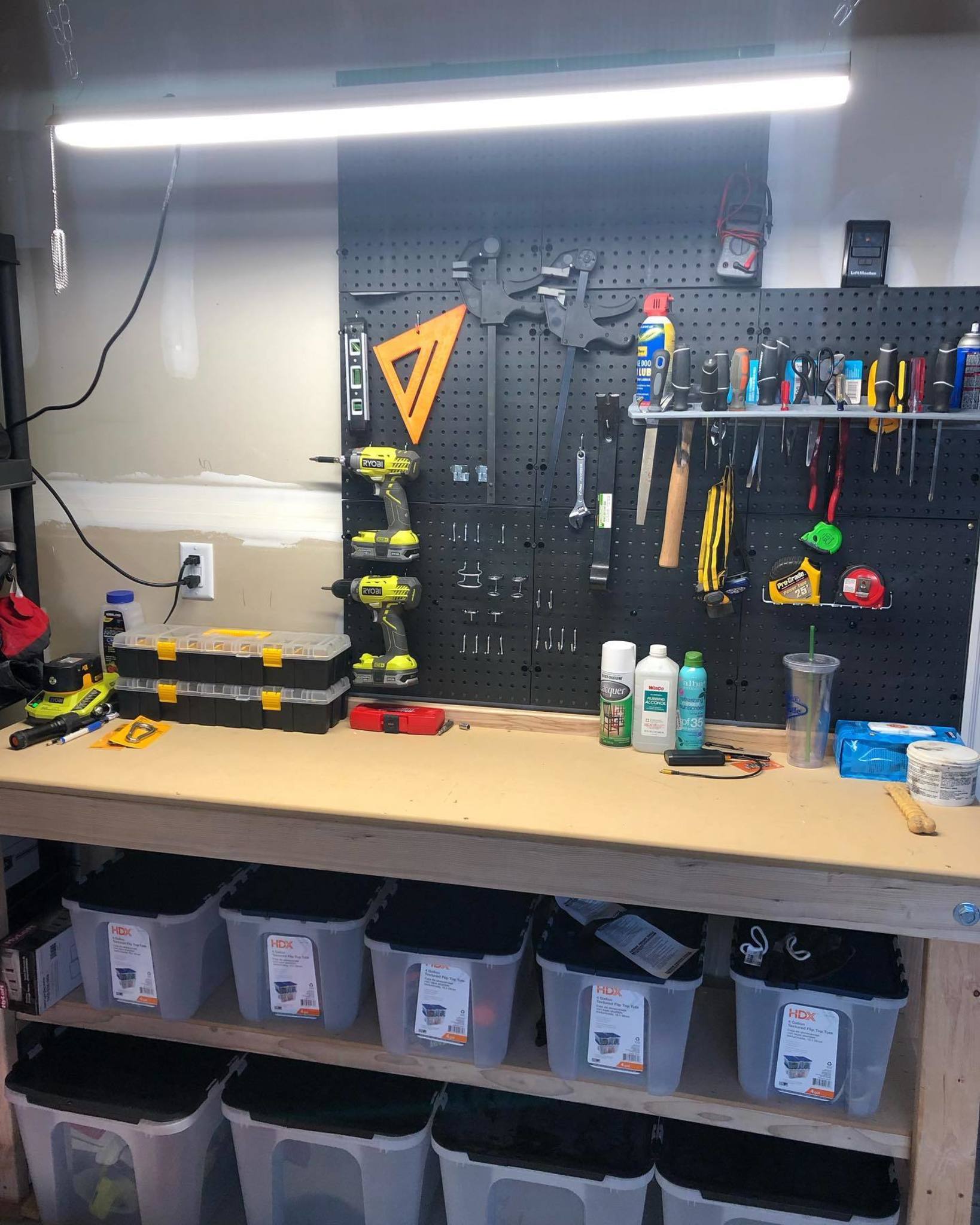 Just getting my workbench started. No coffee can with nuts and bolts though so I have a little work to do.