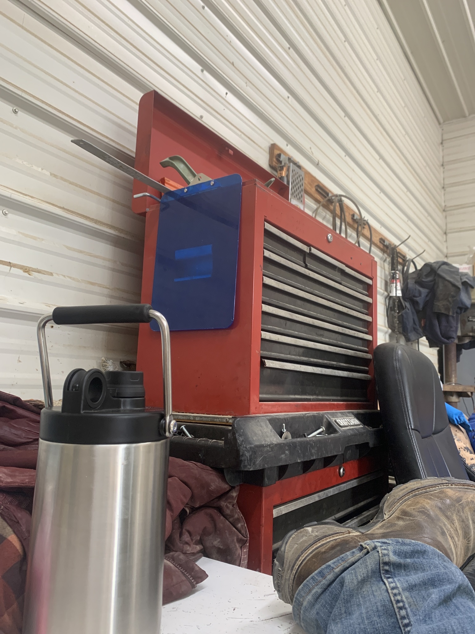This is my work toolbox, I Have a desk in the shop too, the inside of the desk is a mess to th naked eye, but I know where everything is