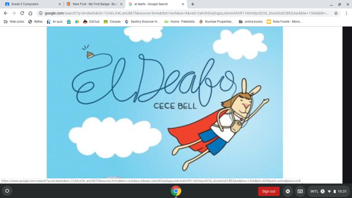 Do a google search of the title of your favorite book. Take a partial screenshot of the cover of the book. Upload the image from you Drive here.