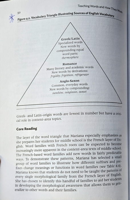 Most of the commonly used words in English have Anglo-Saxon roots. French were the words used by the upper classes after the Normans conquered England. Scientific and technical words came from Greek and Latin during the Renaissance.