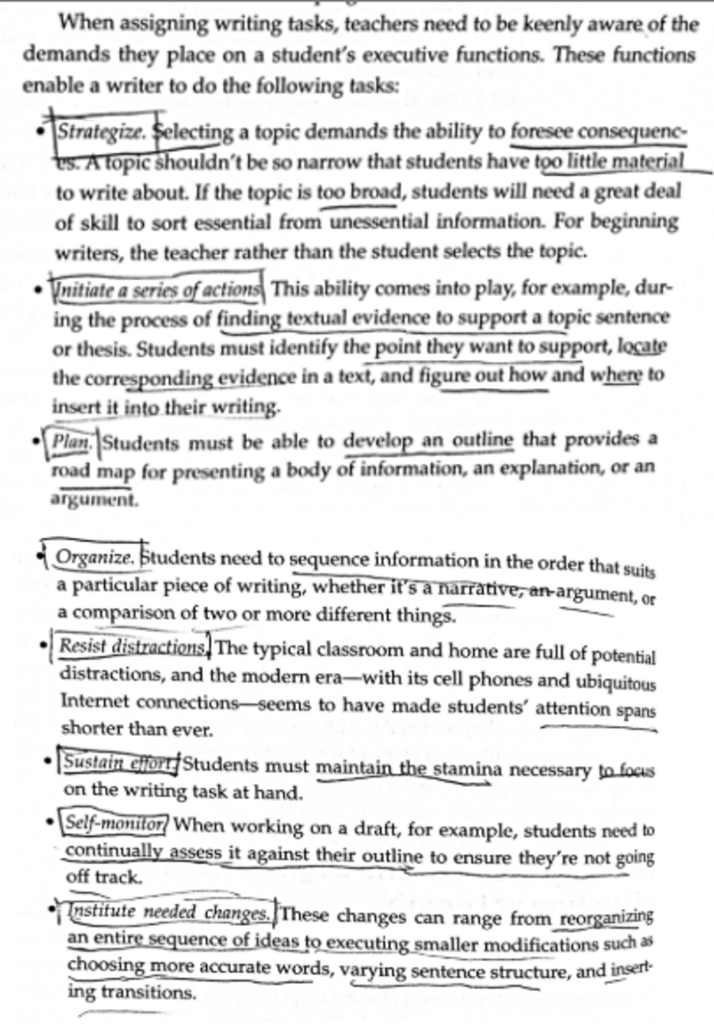 It's important to have students plan before writing, whether it's a single paragraph or multi-paragraph composition. Writing places demands on executive functions and these abilities are a work in progress until your 20s..