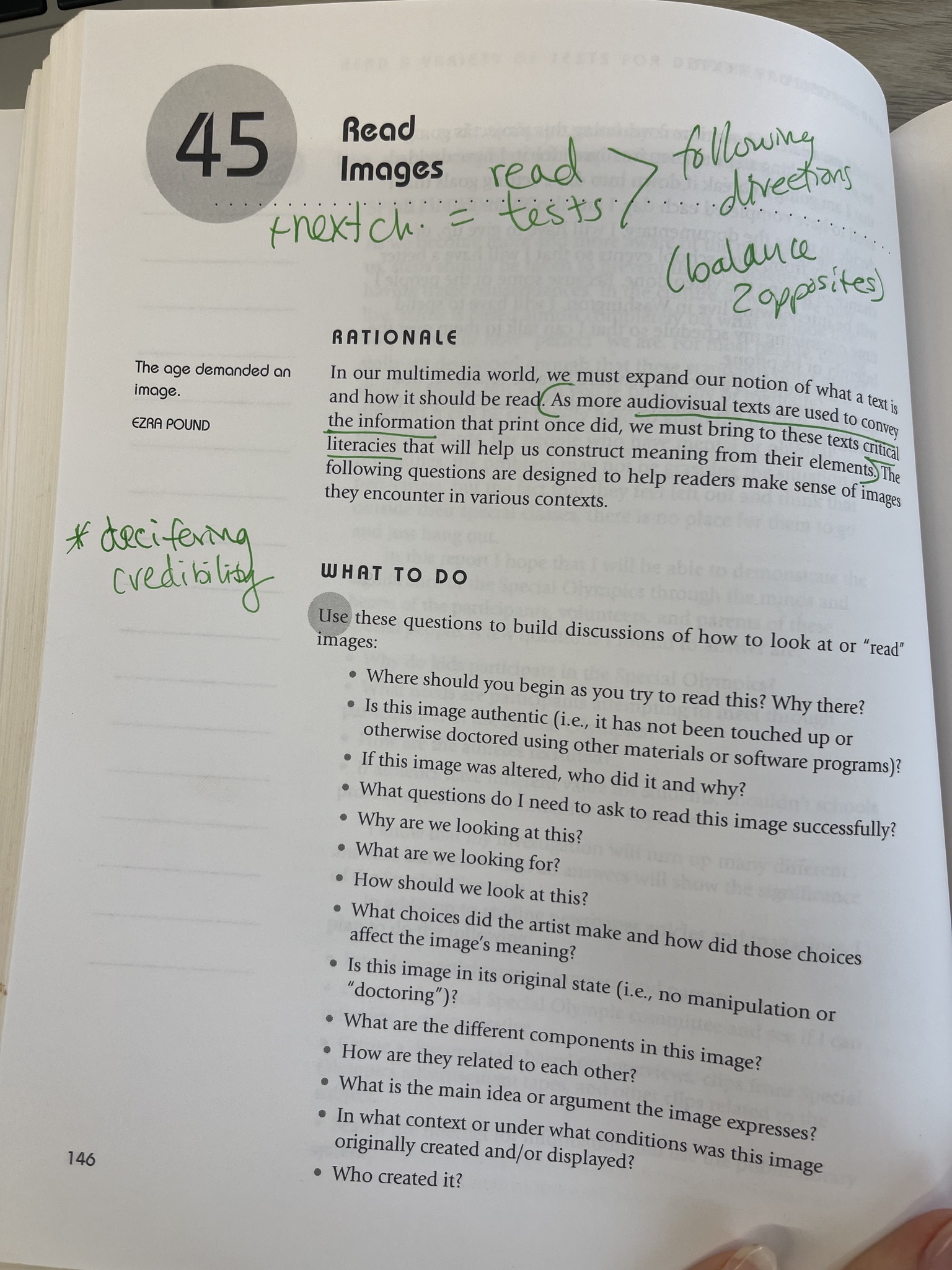 Developing visual literacy & deciphering credibility balanced with comprehending directions. Ironically, these core skills can contradict.