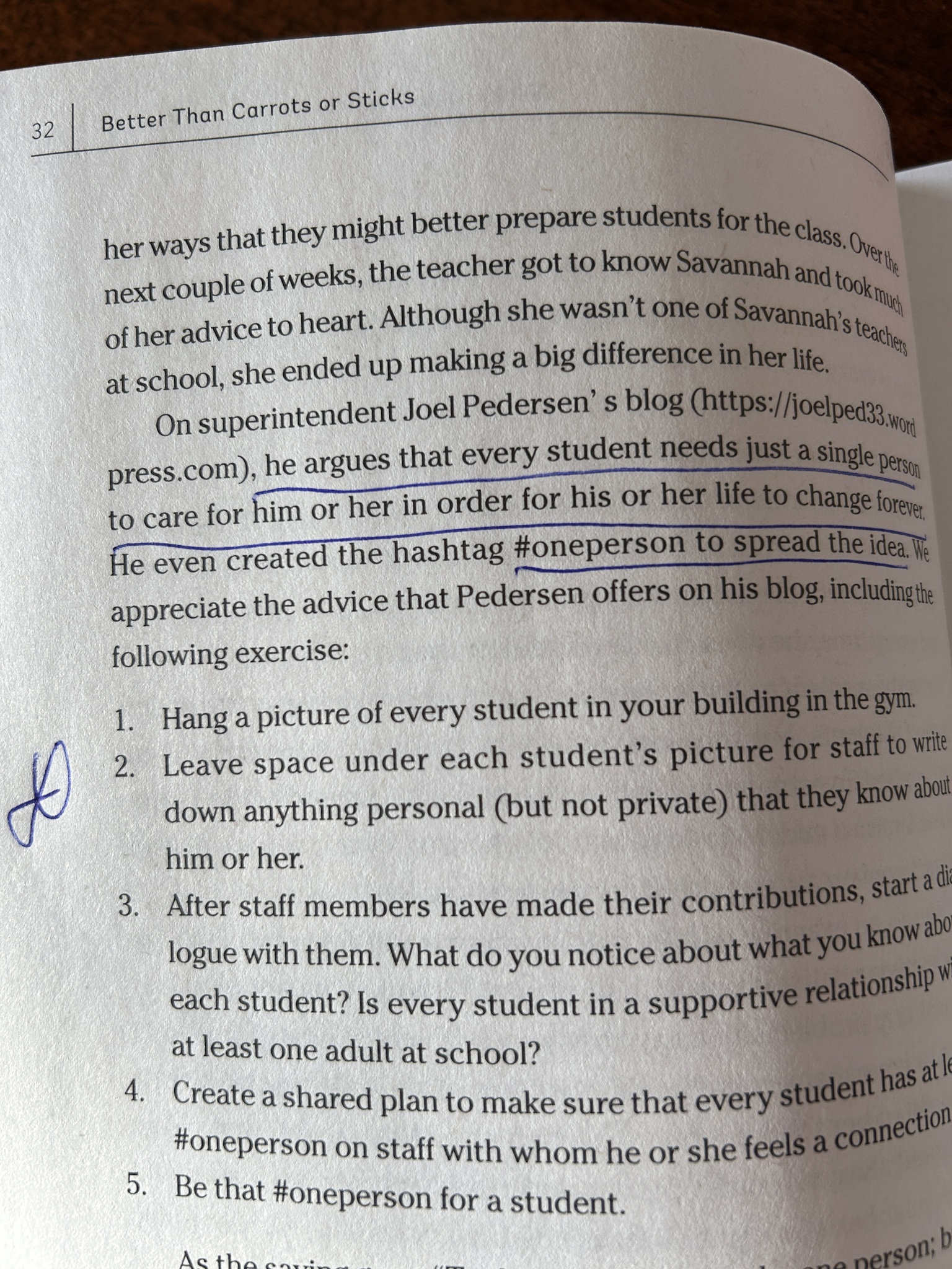 "...every student needs just a single person to care for him or her in order for his or her life to change forever." pg. 32