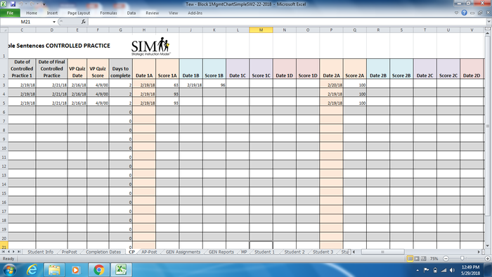 PSW - Simple Sentences - Pre-Test/Post-Test - Block 1