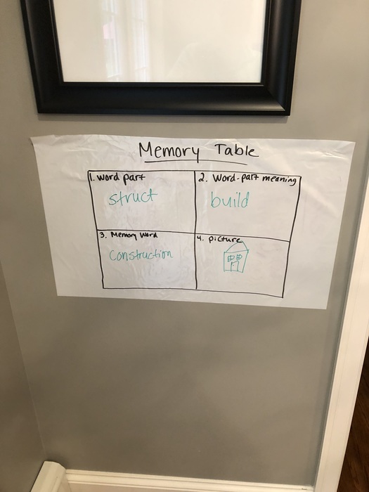 Evidence of Memory Table Instruction for the word Construction.